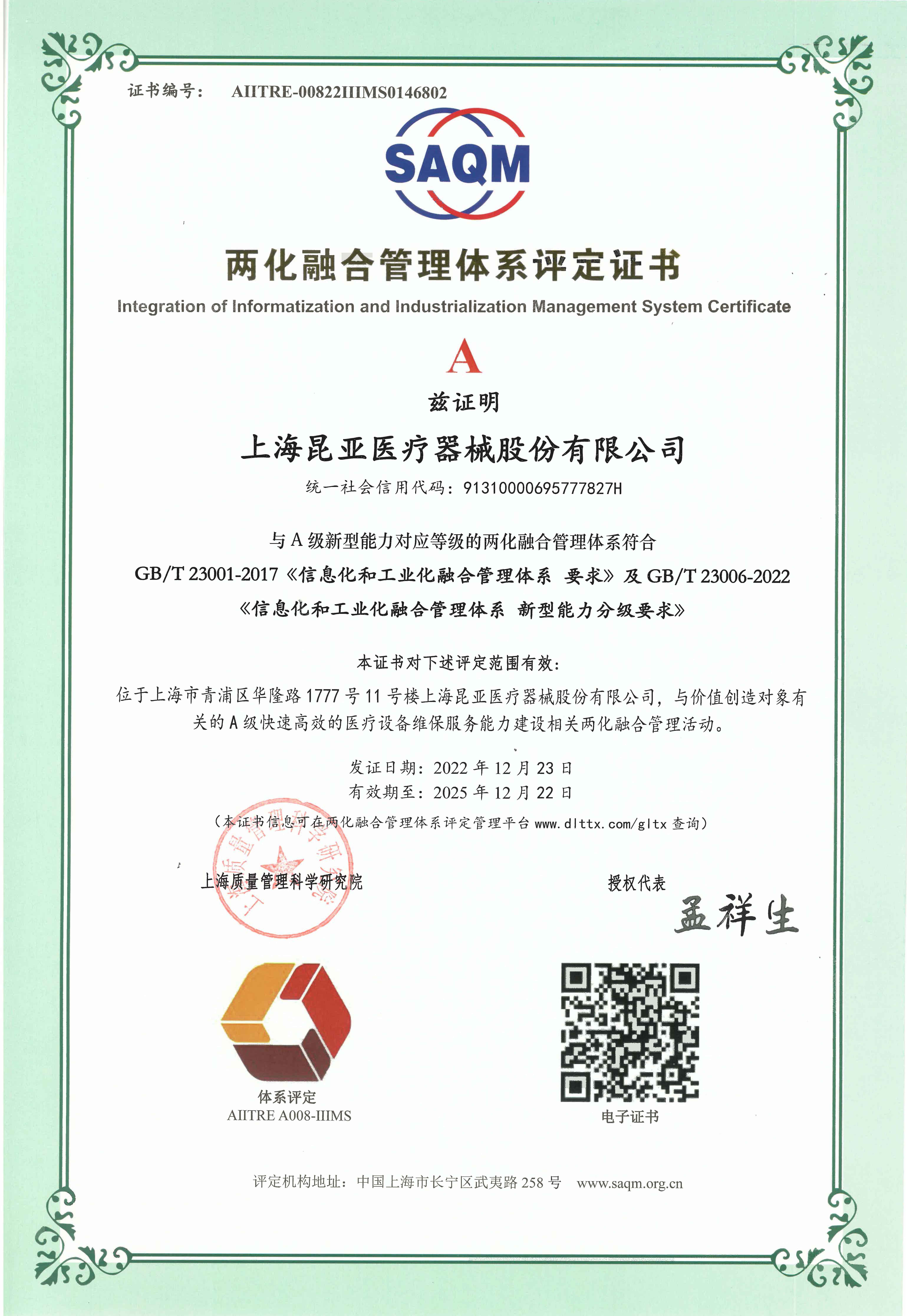 上海昆亞醫(yī)療器械股份有限公司是一家醫(yī)療設(shè)備服務(wù)平臺(tái)提供商,公司主營(yíng)業(yè)務(wù)為醫(yī)院醫(yī)療設(shè)備整體提供維保外包服務(wù),致力于全院醫(yī)療設(shè)備預(yù)防性全生命周期管理;以全面提升醫(yī)院醫(yī)療設(shè)備管理水平、臨床醫(yī)療設(shè)備使用率和開(kāi)機(jī)率打造的專業(yè)化醫(yī)療設(shè)備服務(wù)平臺(tái)。 昆亞醫(yī)療,已通過(guò)ISO14001環(huán)境管理體系、ISO45001職業(yè)健康與安全管理體系、ISO9001質(zhì)量管理體系、ISO13485醫(yī)療器械質(zhì)量管理體系、ISO27001信息安全管理體系五大國(guó)際認(rèn)證;同時(shí),昆亞醫(yī)療為合作客戶提供設(shè)備服務(wù)保險(xiǎn);2017年,昆亞醫(yī)療榮獲得上海市高新技術(shù)企業(yè)稱號(hào),并獲得上海市經(jīng)信委工業(yè)互聯(lián)網(wǎng)創(chuàng)新發(fā)展專項(xiàng)資金支持;2019年,昆亞醫(yī)療榮獲兩化融合管理體系評(píng)定證書(shū);2021 年,榮獲“張江之星”企業(yè)稱號(hào)、榮獲中國(guó)設(shè)備管理協(xié)會(huì)醫(yī)療行業(yè)分會(huì)廣東省培訓(xùn)基地,通過(guò)企業(yè)標(biāo)準(zhǔn)管理體系認(rèn)證、企業(yè)誠(chéng)信管理體系認(rèn)證;2022 年,昆亞醫(yī)療榮獲上海市“專精特新”企業(yè)稱號(hào),通合規(guī)管理體系認(rèn)證、反賄賂管理體系認(rèn)證。。